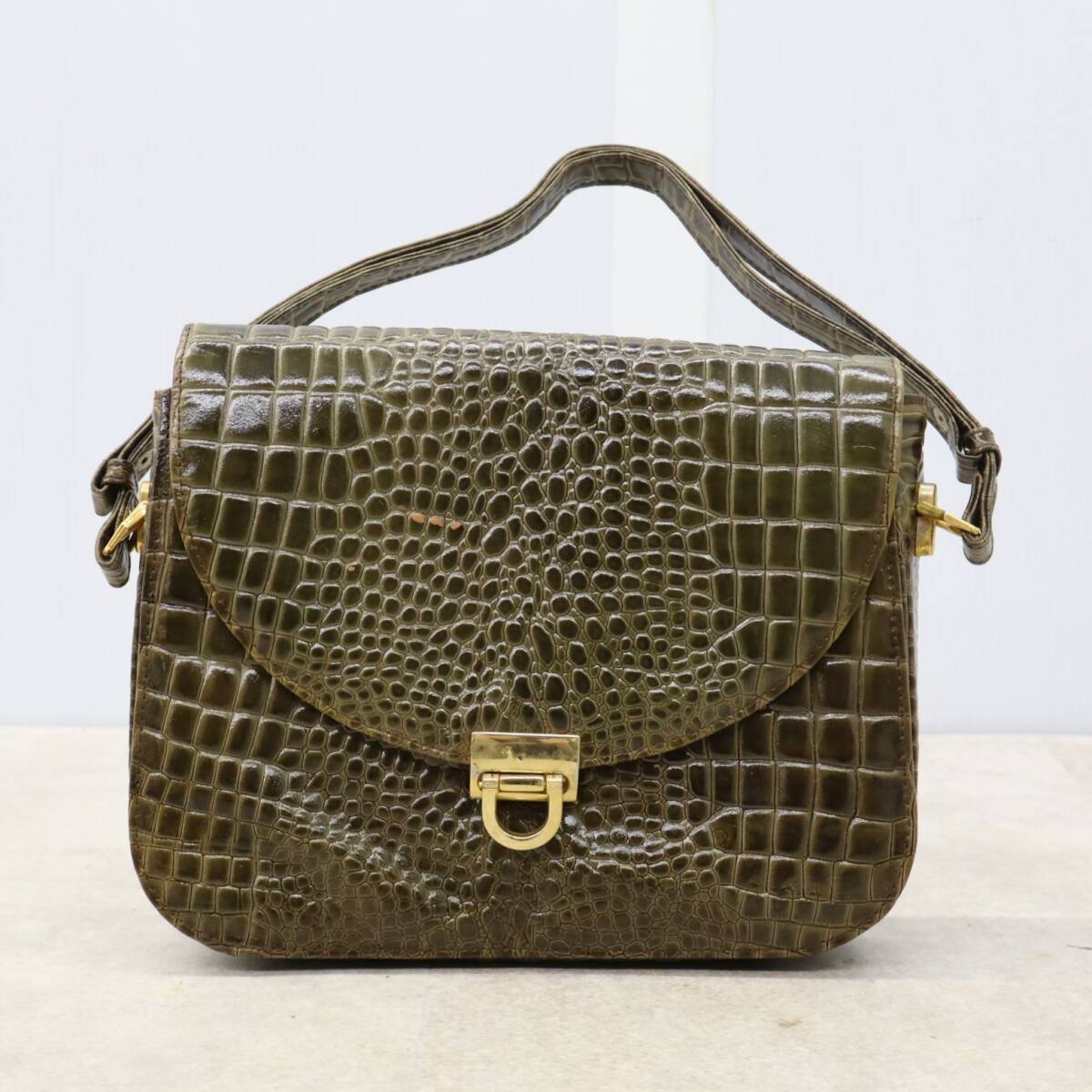 ◇値下げ 圧倒的存在感|クロコダイル ワニ革 ハンドバッグ| ショルダーバッグ|婦人バック ゴールデンガーランド ■P4943の出品です!