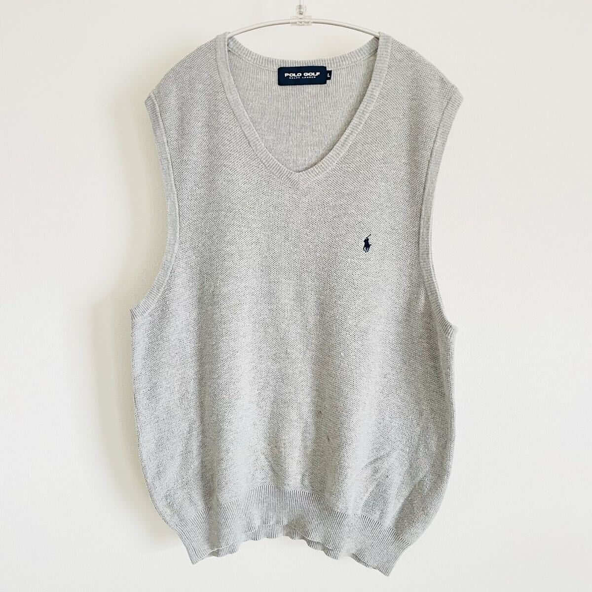 - 【90s ポロゴルフ/ラルフローレン】ポニー刺繍 Vネック コットンニットベスト/グレー/L表記/アメカジ古着/衝撃プライス!売切SALE★B62