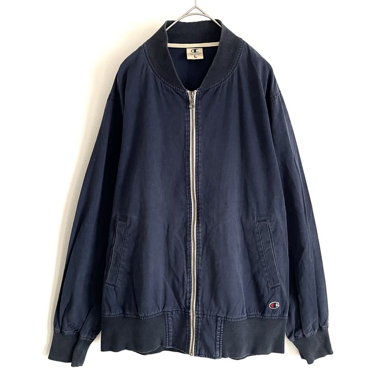 - 【Champion/チャンピオン】ワンポイント刺繍 ジップアップブルゾン/コットンジャケット/L表記/ネイビー/衝撃プライス!アメカジ古着/B66