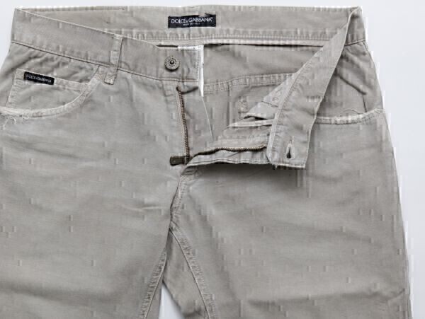 > 名作古着★DOLCE&GABBANAドルチェ&ガッバーナ D&Gメタルプレートクラッシュ加工チノパン Size48 L【SDP61 8522】ベージュ肌色【本物保証】