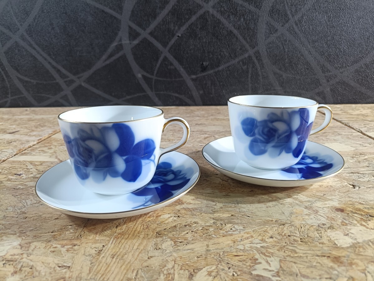 - (UI157)大倉陶園 カップ&ソーサー ブルーローズ ペア 薔薇 OKURA 食器 ティーカップ 茶器 現状品