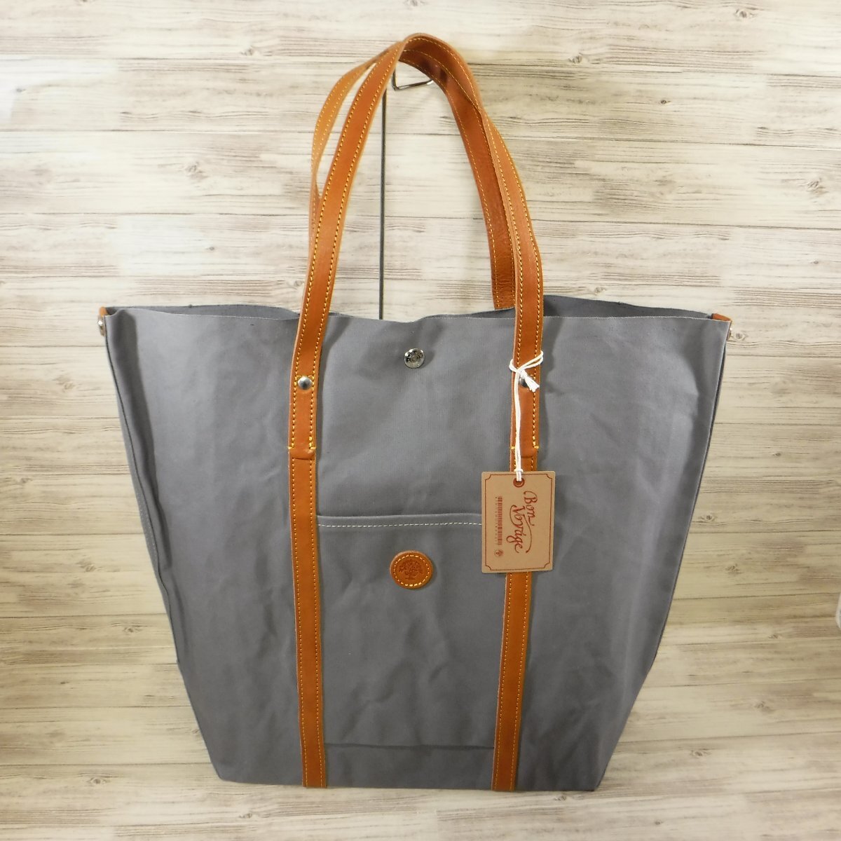 - BB676 木の庄帆布 定価1万6280円 新品 栃木レザー & 帆布 セルヴィッチ トートバッグ 大容量 B4 日本製 グレー × 茶 メンズ レディース