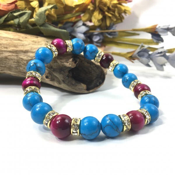 > パワーストーン ターコイズ×ピンクタイガーアイ ブレスレット (ゴールド) 10mm メンズ・レディース 成功 繁栄 安全
