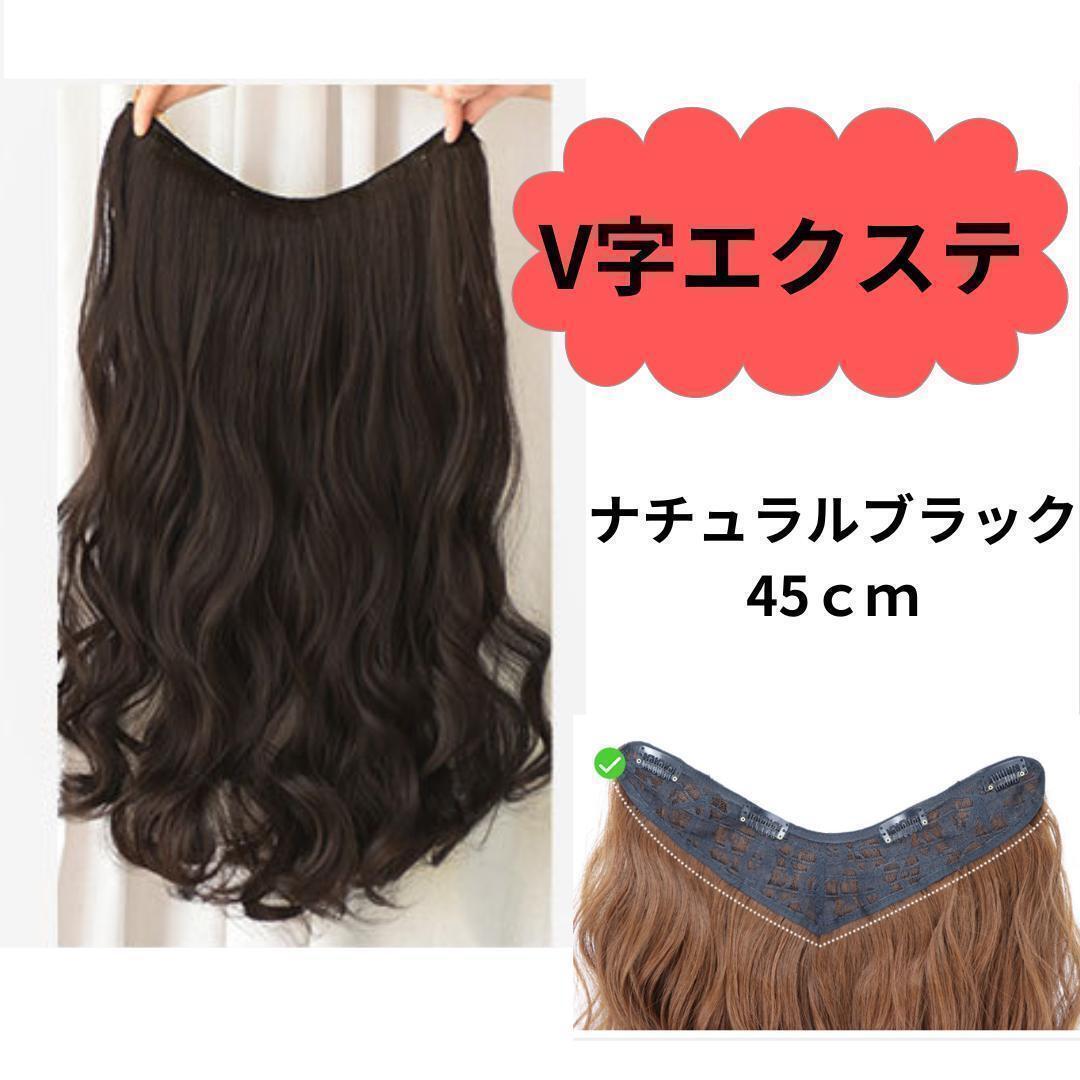 - 襟足エクステ45㎝ ナチュラルブラック 732 ハーフウィッグ wig カール 黒髪 ナチュラル コスプレ ハロウィン