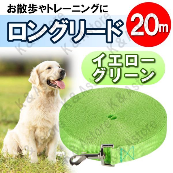 - ロングリード 20m 犬用 ドッグラン ペット 散歩 小型犬 中型犬 大型犬 長い リード 絡まない しつけ トレーニング イエローグリーン 黄緑