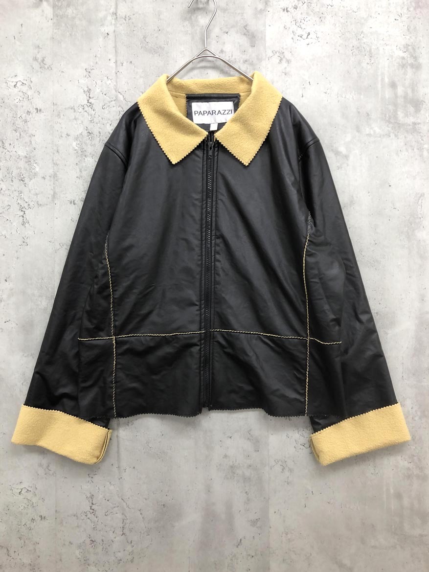 > PAPARAZZI パパラッチ 裏フリース フェイクレザー 切り替えデザイン ジップアップ ジャケット sizeL/ブラック系 ◇■ ☆ fid0 レディース