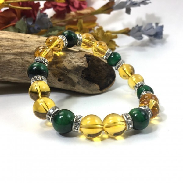 > シトリン×グリーンタイガーアイ パワーストーン ブレスレット 天然石ブレス 10mm (シルバー) メンズ・レディース 繁栄 富 幸福
