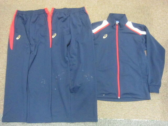 > アシックス ジャージ上下セットアップ 3枚セット メンズL 紺 トラックスーツ上下 トラックジャケット&ジャージパンツ トレーニング09279