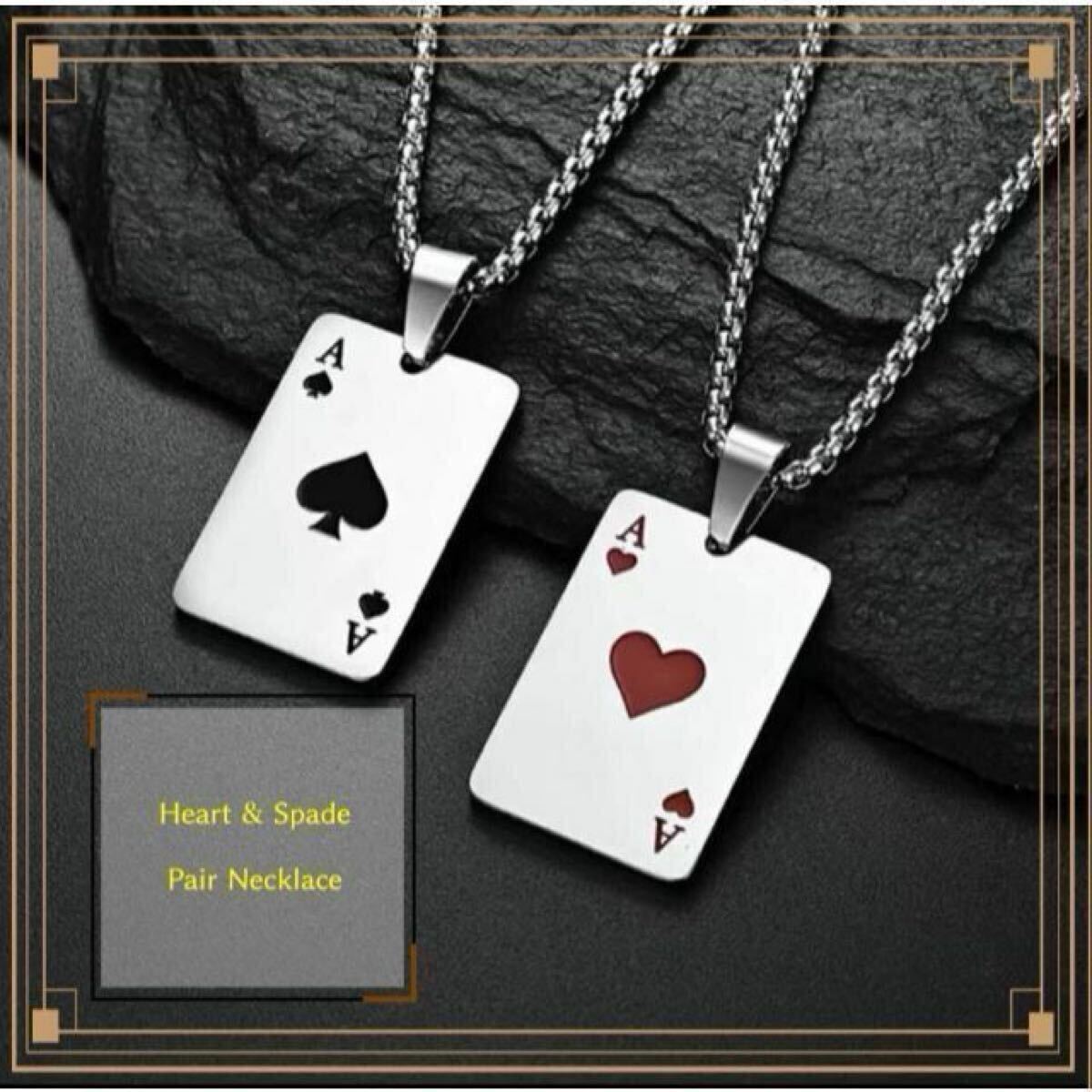 - セットシルバーネックレス*ハートA・スペードA*トランププレートペアネックレス