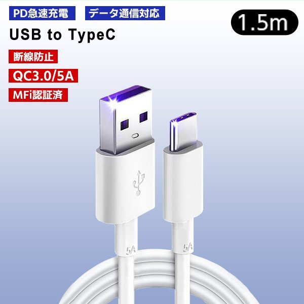 - [7]USB Type-A to Type-C ケーブル 1.5m 1本 PD急速充電 データ転送対応 スマホ iPhone15 通信 充電コード 高速充電 ゲーム機 スイッチ