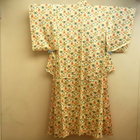 - 【お茶、お華、着付けのお稽古にどうぞ!】3000円正絹菊花文袷小紋 お稽古着 中古品