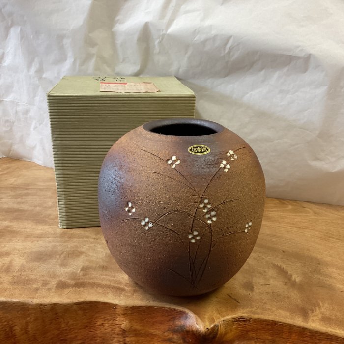 - 【新品】3500円 信楽焼 6号火色花彫花瓶 花器、花瓶 正月用品