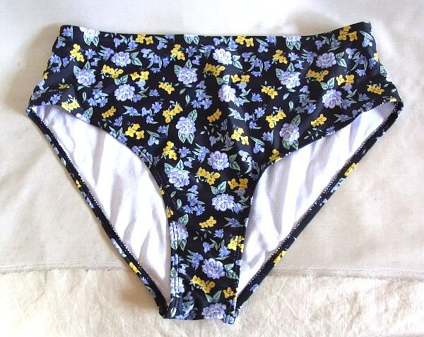 - ★☆大きい つるつる水色&イエロー小花柄入り黒ビキニ水着ショーツ☆★