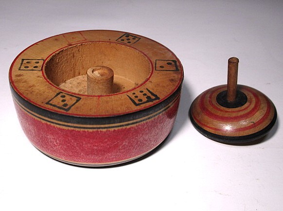 - 稀少 アンティーク★ レトロ★江戸独楽 コマ 回し台付き 独楽 サイコロ目付回し台 木製玩具 1セット 郷土玩具 独楽直径4cm 回し台直径7.6cm