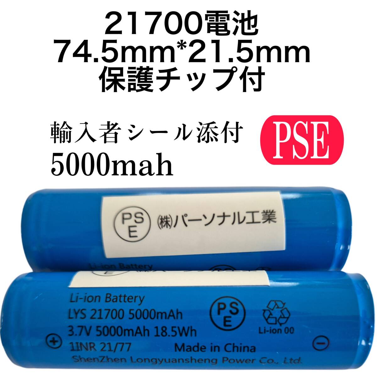 - 品質重視 2本 保護回路付き 21700リチウムイオン電池 5000mah PSE有
