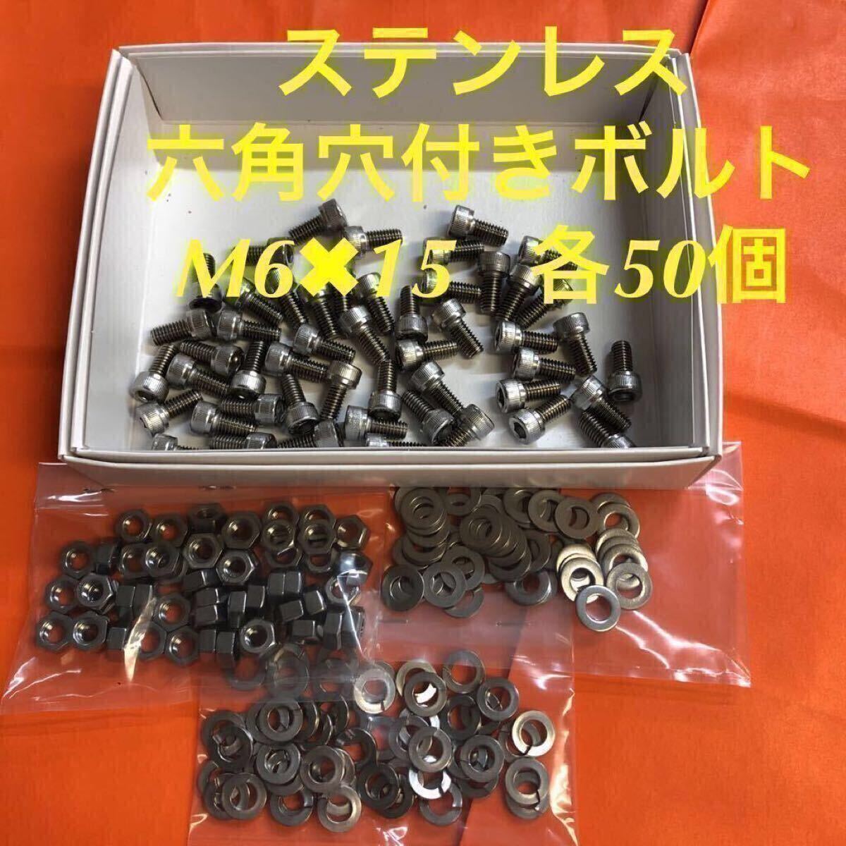 - ★送料込★ステンレス 六角穴付きボルト M6×15 ナット・平ワッシャー・スプリングワッシャー 各50個 ステン キャップボルト