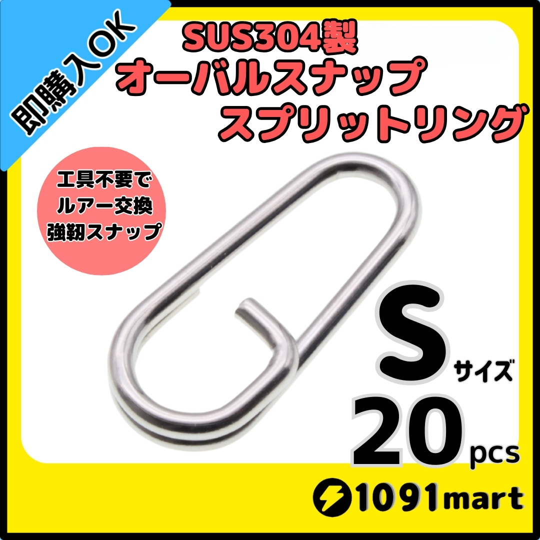 > 【送料150円】SUS304 ステンレス製 オーバルスナップスプリットリング Sサイズ 20個セット ジギング 青物 SLJ 工具不要で楽々ルアー交換