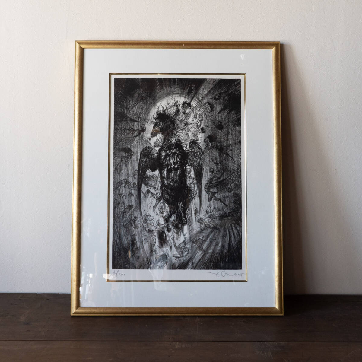 - 真作保証 限定100部 天野喜孝 鳥の歌 36/100 リトグラフ 版画 絵画 額装 検索ワード/ファイナルファンタジー