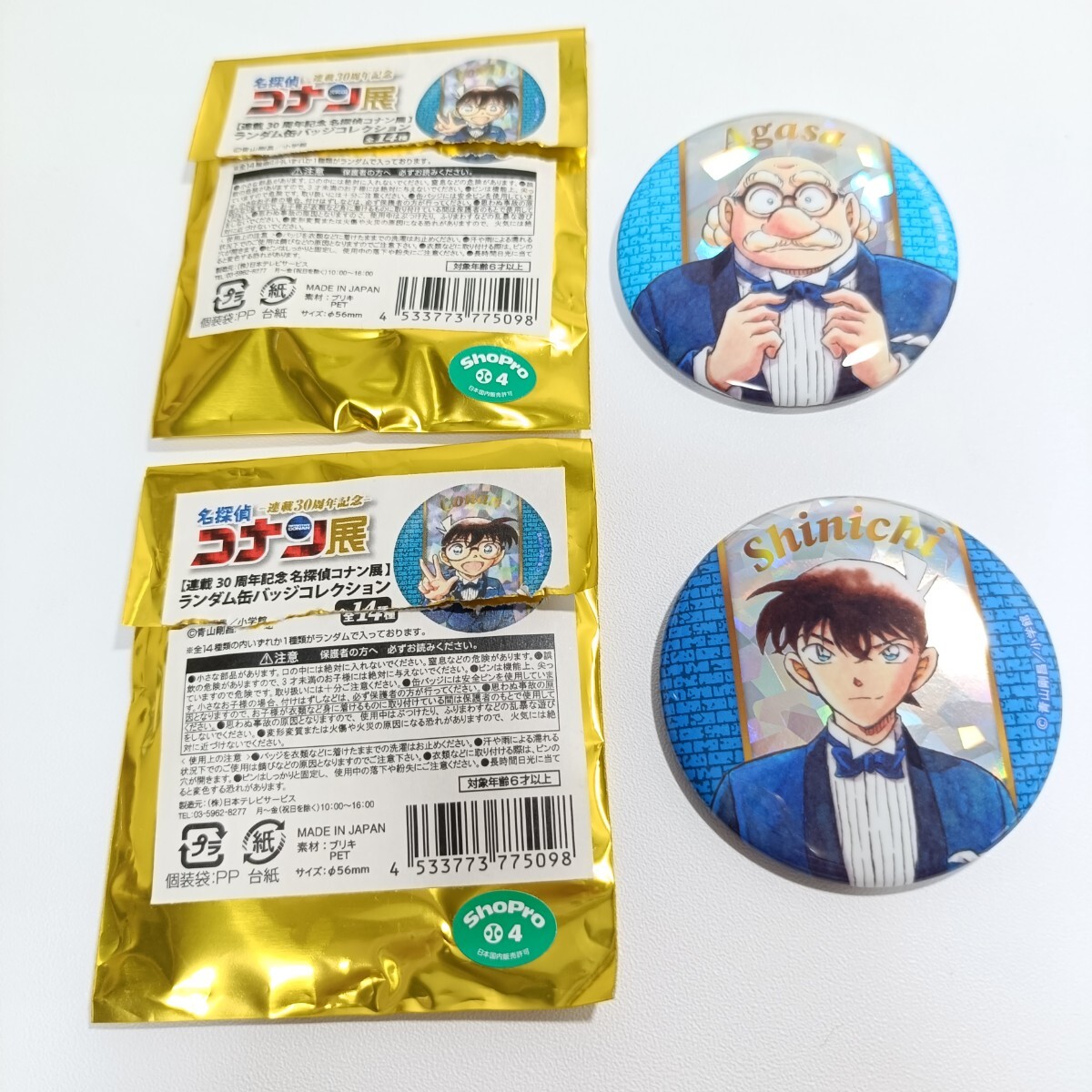 - ShoPro 連載30周年記念 名探偵コナン展 ランダム缶バッジコレクション 工藤新一 阿笠博士 2点セット 未使用品