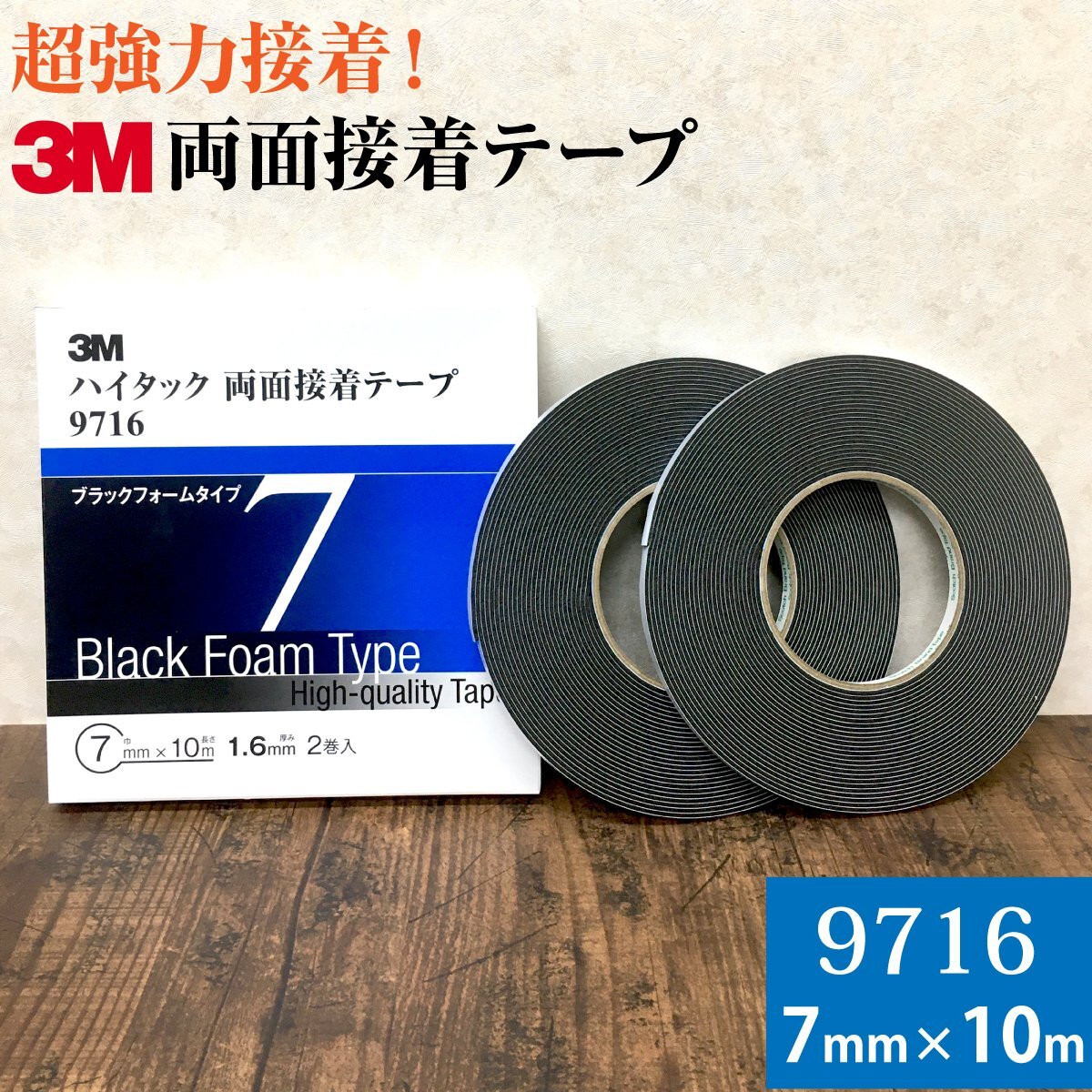 - 3M ハイタック両面接着テープ 9716 巾7mm 2巻入り ブラックフォームタイプ 厚み1.6mm 長さ10m スリーエム 自動車補修 強力接着
