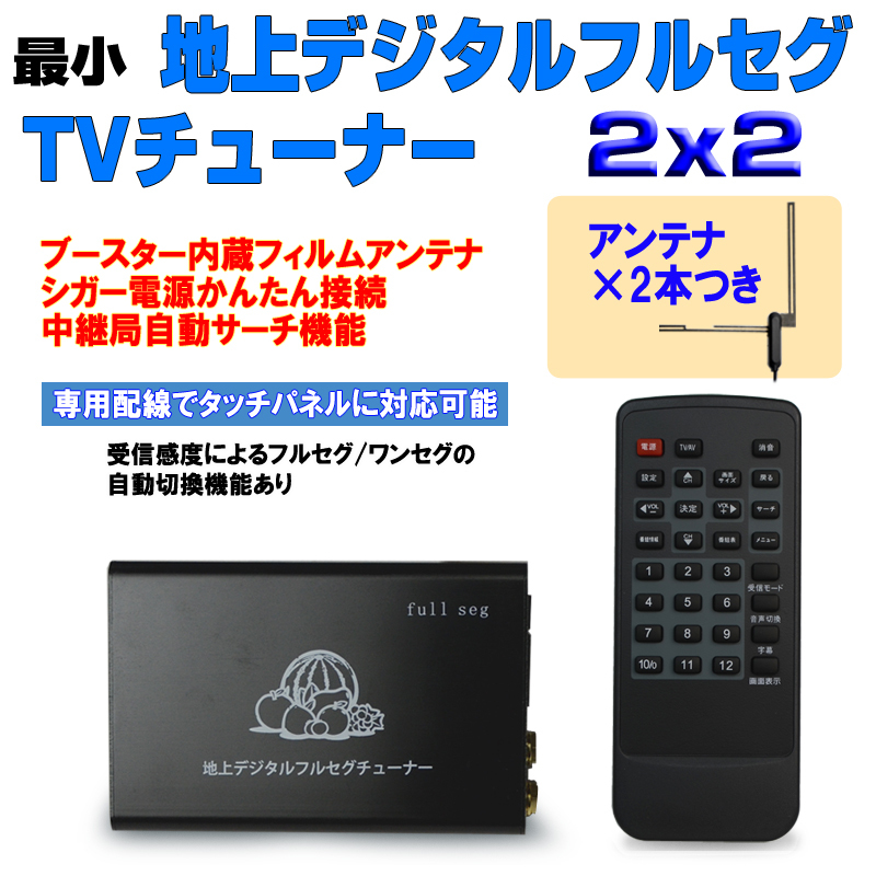 - 地デジフルセグチューナー2x2 フルセグ ワンセグ自動切換えシガー電源 ブースター内蔵 フィルムアンテナ 出力2系統 HDMI端子[Tu2]