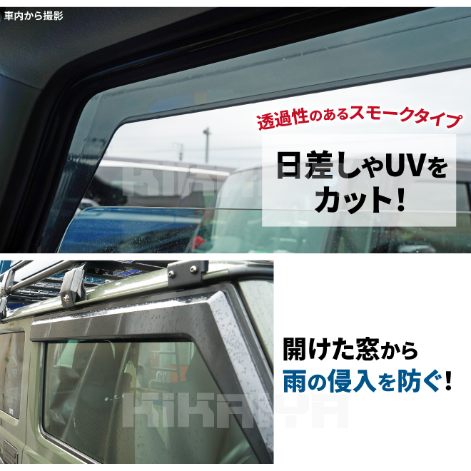 - ジムニー 3ドア ウィンドウバイザー JB64 JB74 ドアバイザー ウインドウ サイドドア 角型 日よけ 雨よけ スモーク