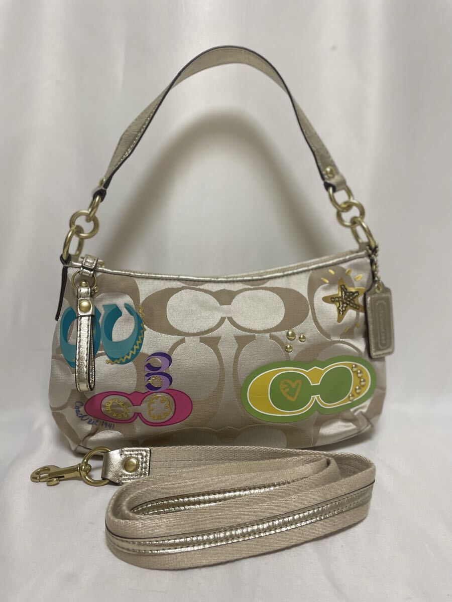 - 1円~ 【美品】 COACH コーチ 2WAY ショルダーバッグ シグネチャー サテン アップリケ F17589 保存袋あり