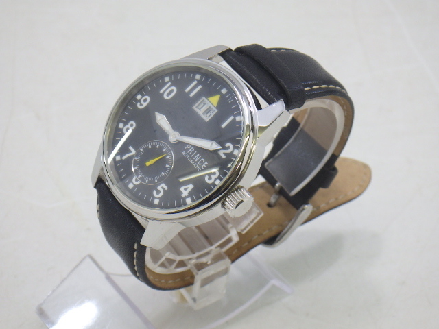 - h5I077Z20 PRINCE プリンス P-0008 スモセコ 裏スケ デイト 黒文字盤 稼働品