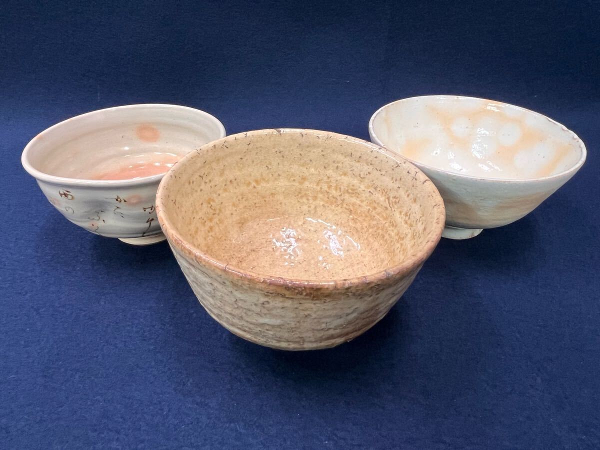 - abse093014 陶芸 まとめて 3客 茶碗 抹茶碗 茶道具 在銘 萩焼