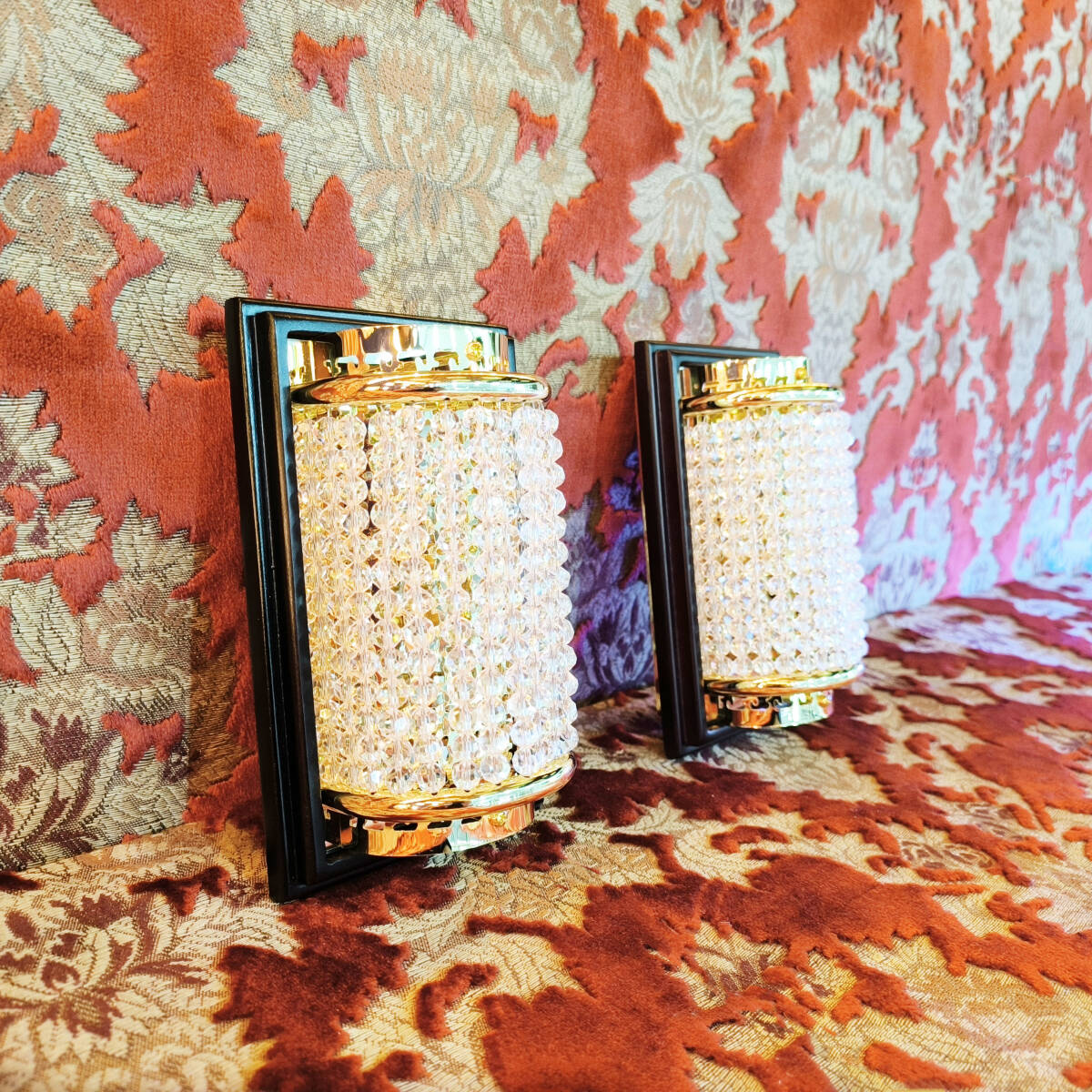 - 特価 訳有品壁掛シャンデリア2個セット木枠土台付き ゴールドメッキ金華山サロンバス男の城トラック部品観光バス デコトラ 車内照明C8682S