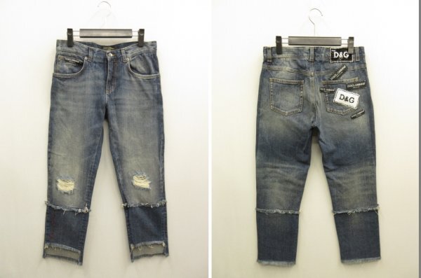 - ドルチェ&ガッバーナ★ ロゴラベル×スパン刺繍カットオフ ダメージ加工デニムパンツジーンズ◆サイズ40◆ジャパン正規品◆DOLCE&GABBANA