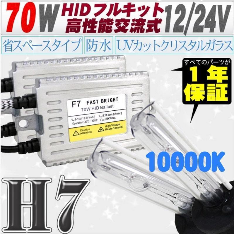 - 高性能 薄型HIDキット 70W H7 リレー付 10000K 12V/24V 【交流式バラスト&クリスタルガラスバーナー】