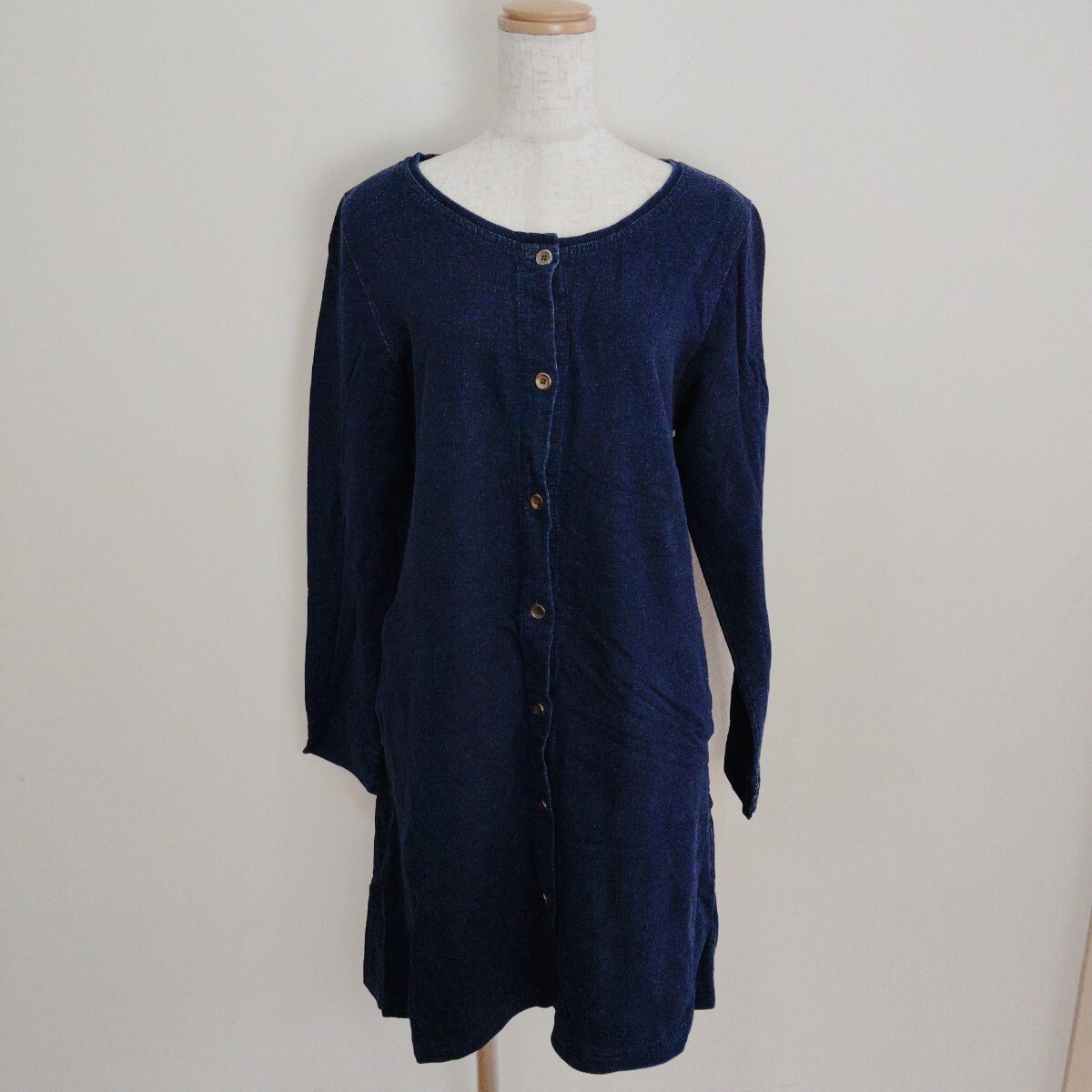 - 1001/M~L/cloudlne レディース 長袖ワンピース シャツワンピ カットソー デニム ネイビー