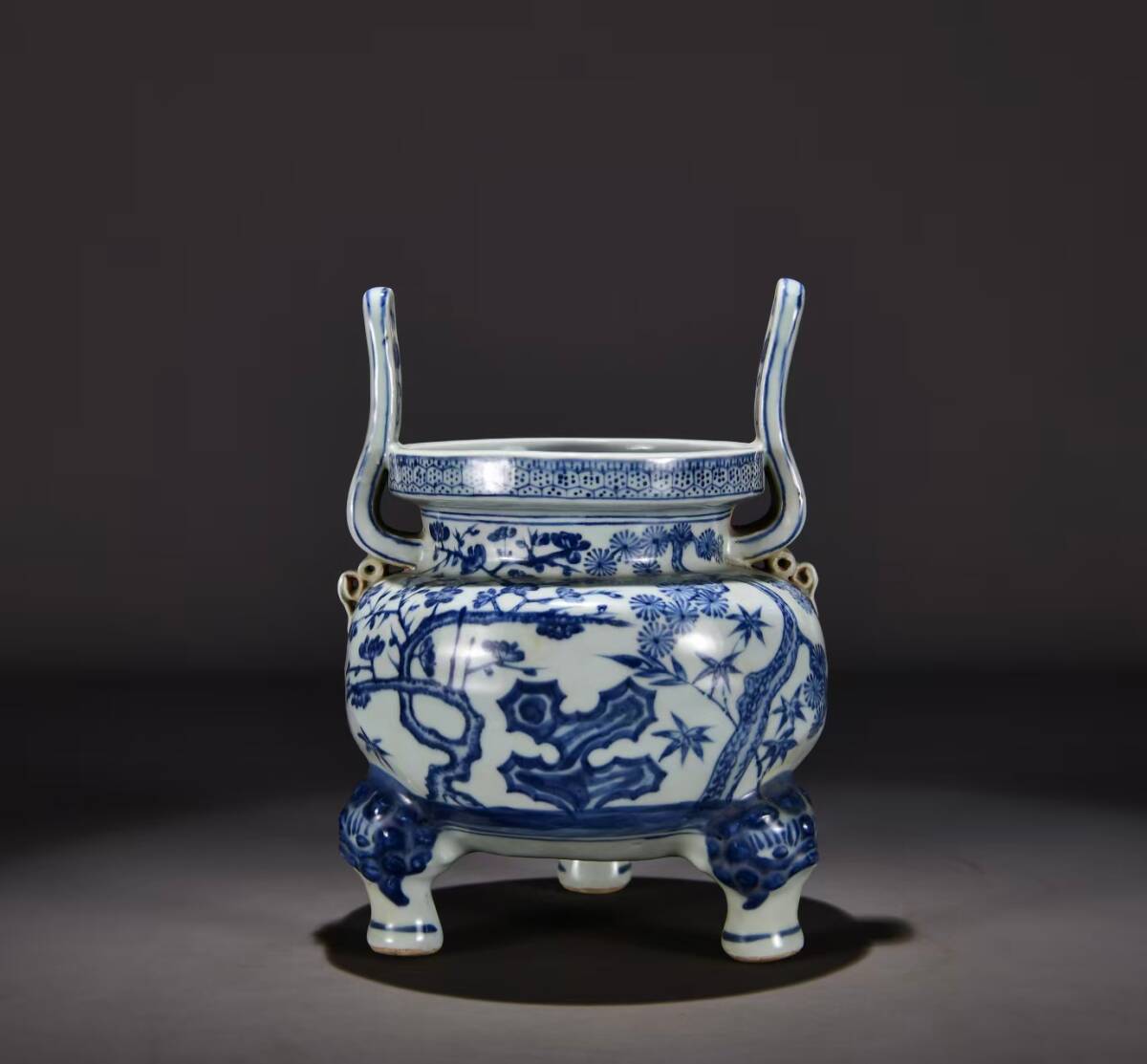 > 磁器 旧蔵 大明宣德年製 青花 松竹梅紋 香炉 古陶瓷 古擺件 古置物 中国古玩 骨董品 時代物 稀少唐物