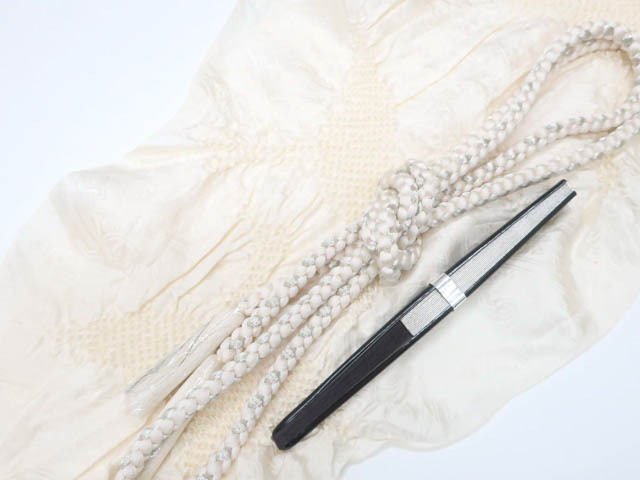- 《京都一輝堂》リサイクル着物 和装小物 帯揚げ帯締めセット 帯揚 帯締 礼装用 中抜き絞り 丸組 銀糸 末広付 25w10-12090