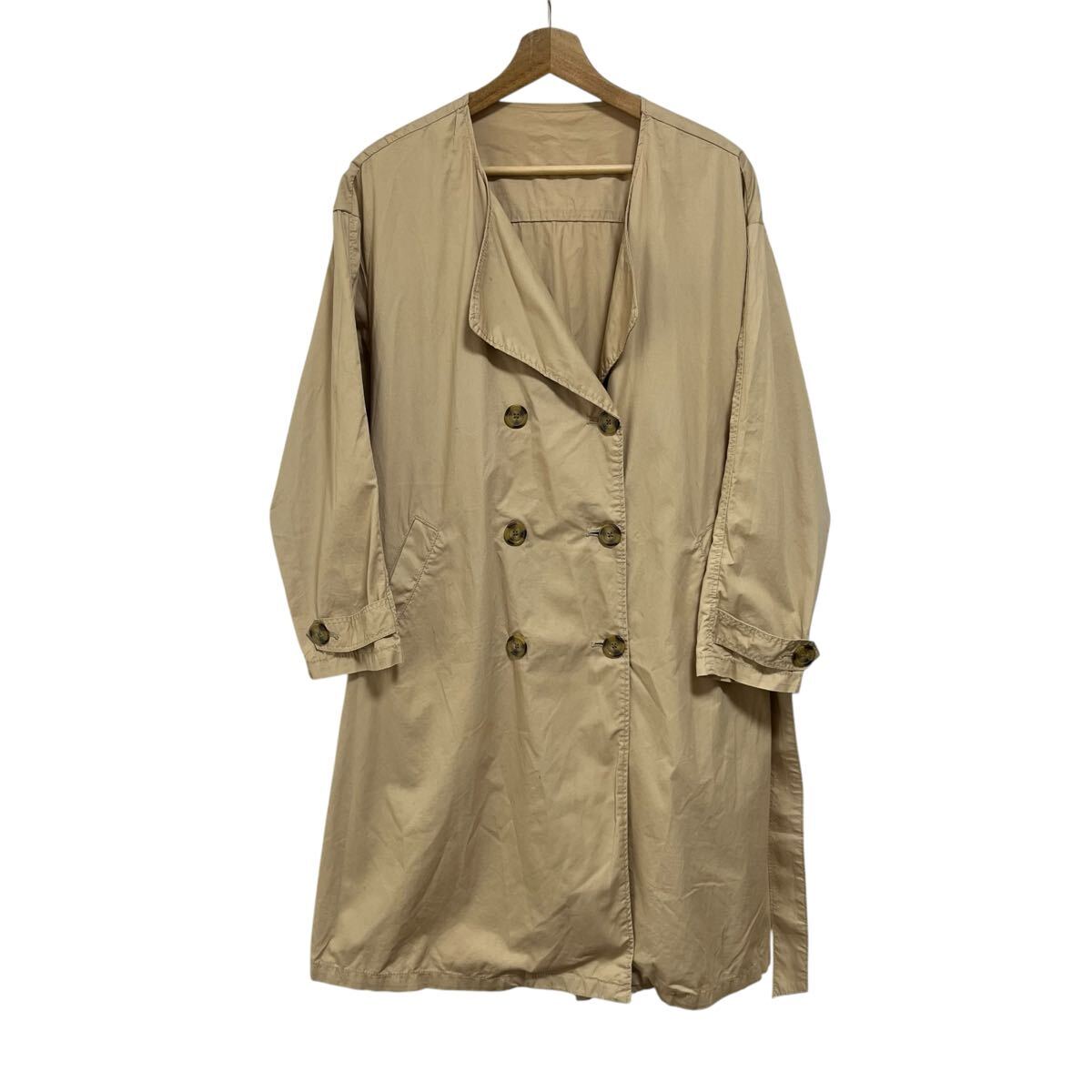> ※YL1 AS KNOW AS PINKY ノーカラートレンチコート ベージュ ロング丈 ベルト付き 薄手 サイズM