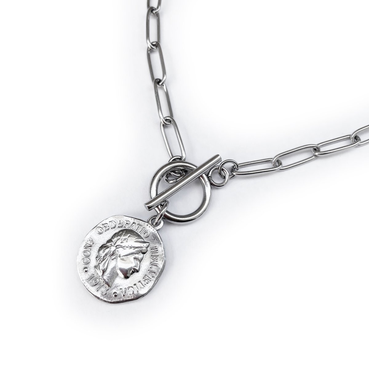 - ステンレス製 コインマンテルネックレスチョーカー 幅約4.2mm 約38.5cm