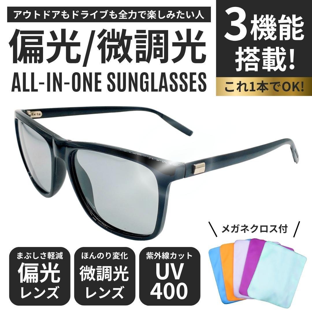 > サングラス UV400 偏光 調光 黒縁 男女兼用 紫外線対策 ユニセックス 釣り おしゃれ メンズ レディース カット 仕事 車内 バイカー 海 夏
