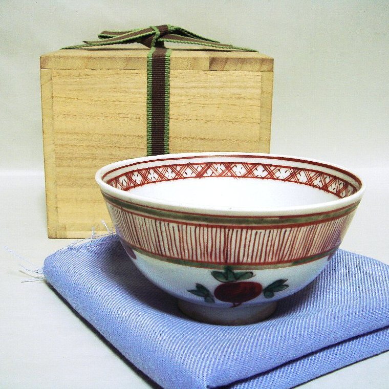 - Y123 河濱支流 呉須赤絵茶碗 箱付き 茶道具 永楽善五郎