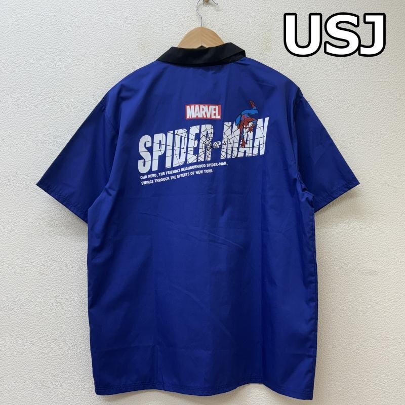 - 古着 Universal Studios Japan USJ スパイダーマン プリント オープンカラー ボックス 半袖 シャツ ユニセックス 青 ブルー L