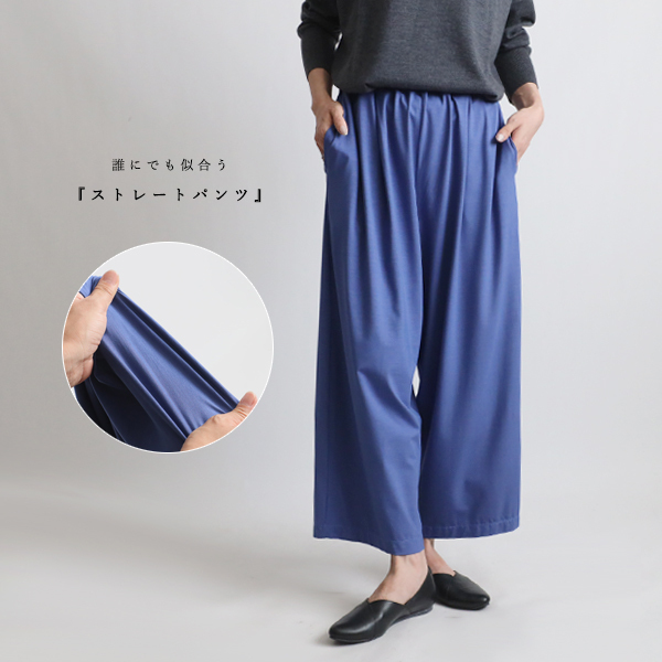 - 秋PRICE 90cm シルケット とろみ伸縮カットソー ストレートパンツ ロング ゆったり ストレッチ ブルーパープル F59A