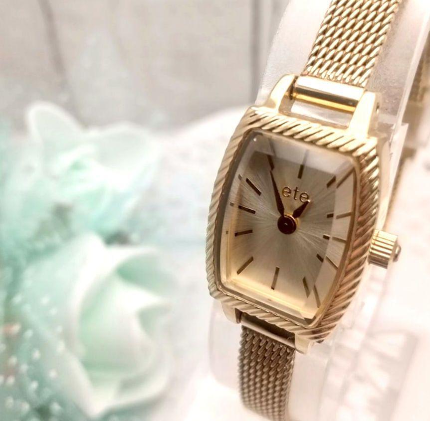 - 稼働品 ete エテ トノー型 腕時計 レディース 1Pストーン クォーツ式