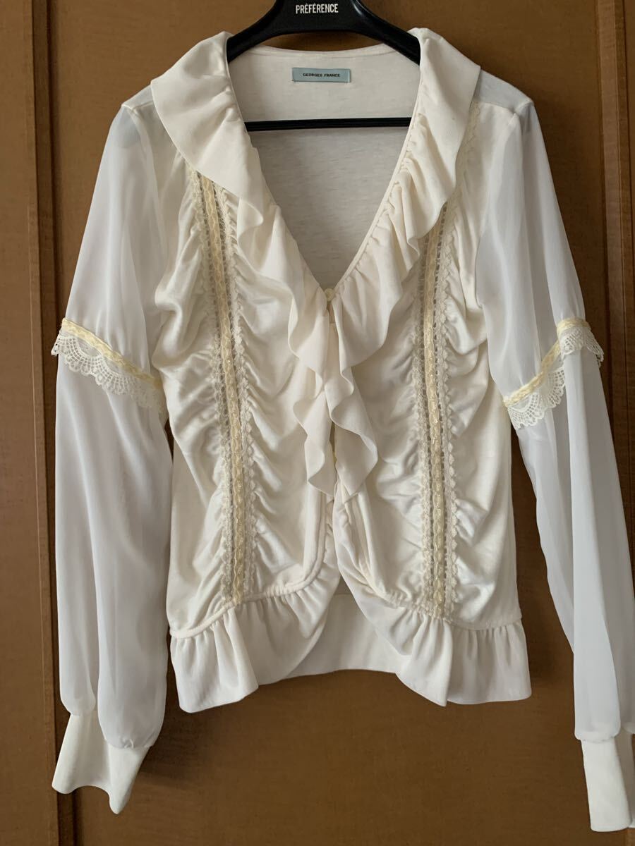 - シースルー レース フリル 長袖 カーディガン 春夏秋 羽織り 肩幅38cm 袖丈59.5cm 着丈57.5cm
