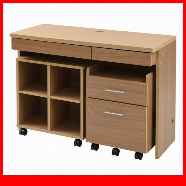 > デスク 机★テレワークに シンプルデスク チェスト ラック 3点セット/パソコンデスク 書斎机 オフィスで/ナチュラル/a3