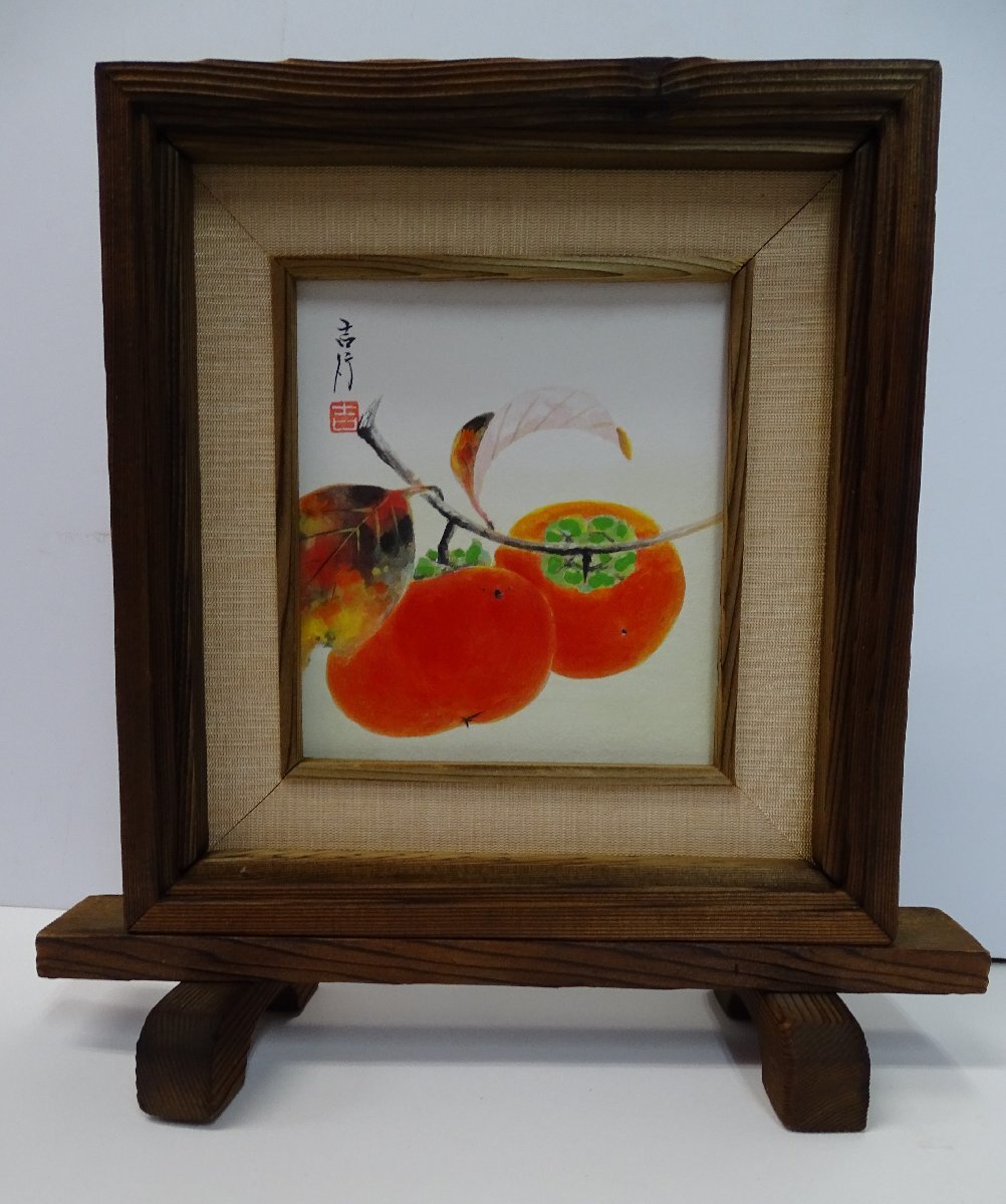 - ・作者: 佐藤 吉行 ・画題: 柿 ・技法: ミニ色紙絵(直筆〕・NO R6-3-13.8