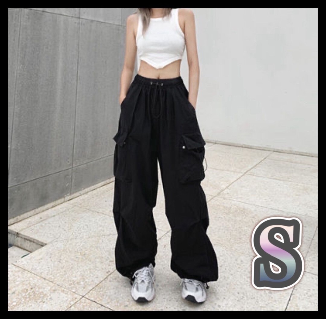 - パラシュートパンツ カーゴパンツ ブラック 黒 S トレンド 韓国 人気 ダンス ストリート