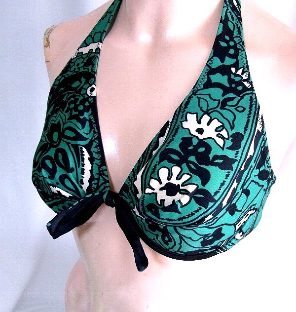 - ★☆白黒花柄入りグリーンビキニ水着のブラ☆★