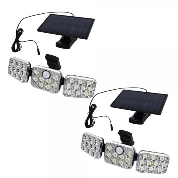 - 2個セット 最新分離型 138LED ソーラーライト 防水 センサーライト 屋外 3灯式 超高輝度 5M延長コード IP65防水 人感センサーライト
