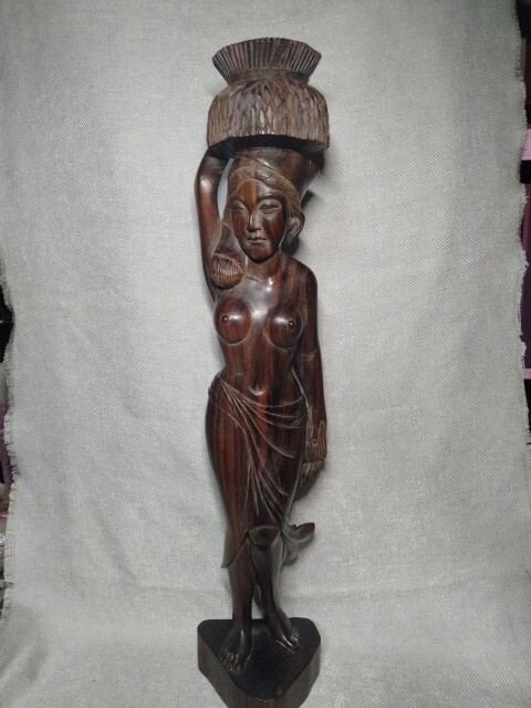 - 紫檀 インドネシア バリ 木彫り女性像 52cm