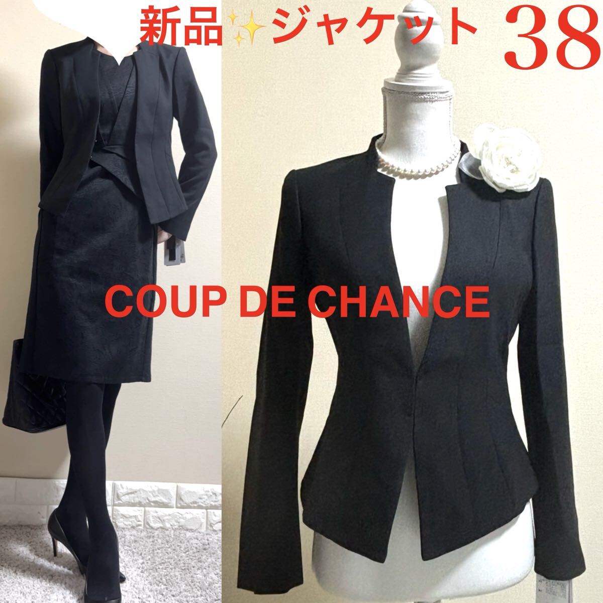 - 新品!COUP DE CHANCE クードシャンス 360° 定価36,000円 洗える スタイル美人 ジャケット M 黒 38 秋冬春 通勤 七五三 入学式